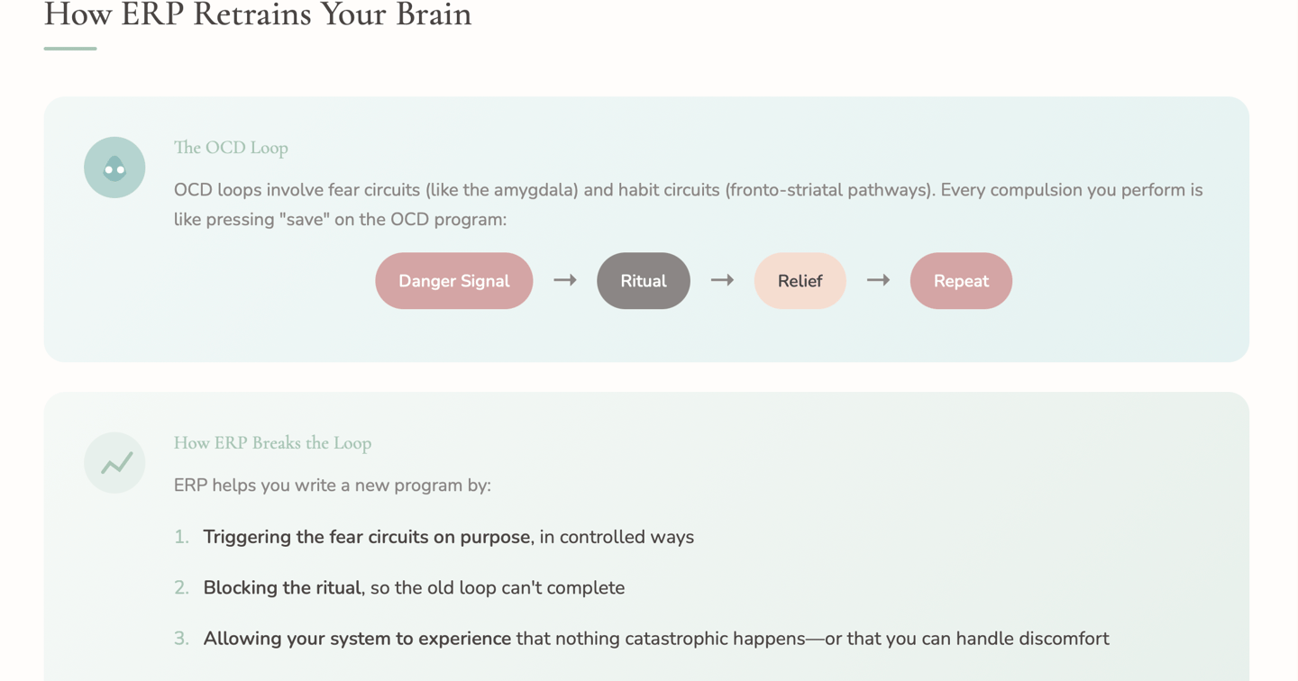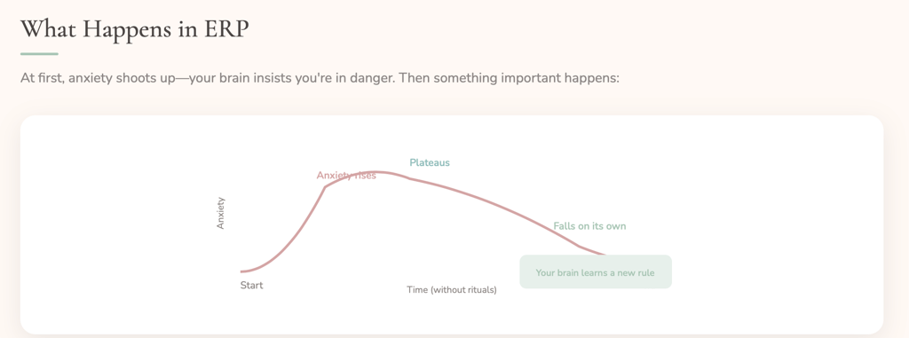 "If you stay with it, supported and without rituals, the anxiety rises, plateaus, and falls on its own. Your brain learns: Maybe I don't need to obey OCD to be safe."