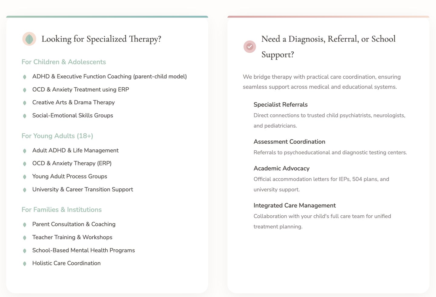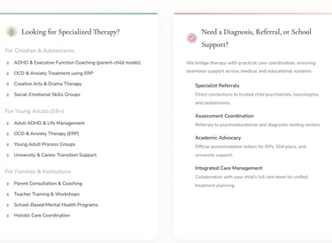 At Jeena Therapy, we offer evidence-based psychological support tailored to the evolving needs of youth and young adults. Through a holistic framework that integrates individual therapy, family collaboration, and school-based consultation, we address challenges related to ADHD, OCD, anxiety, and emotional well-being with clinical expertise and cultural sensitivity.