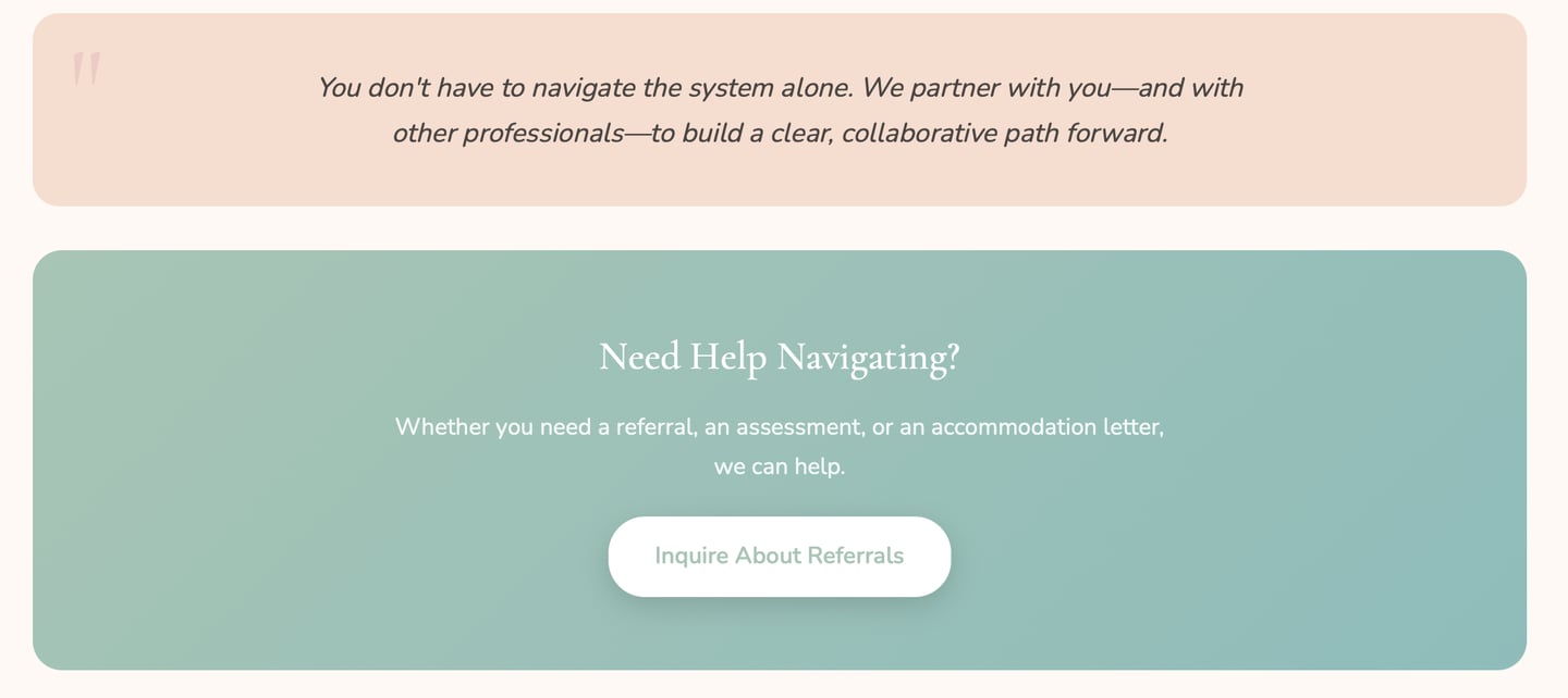 Beyond therapy, we provide coordinated care connecting you with trusted specialists and advocating for your child's educational needs.