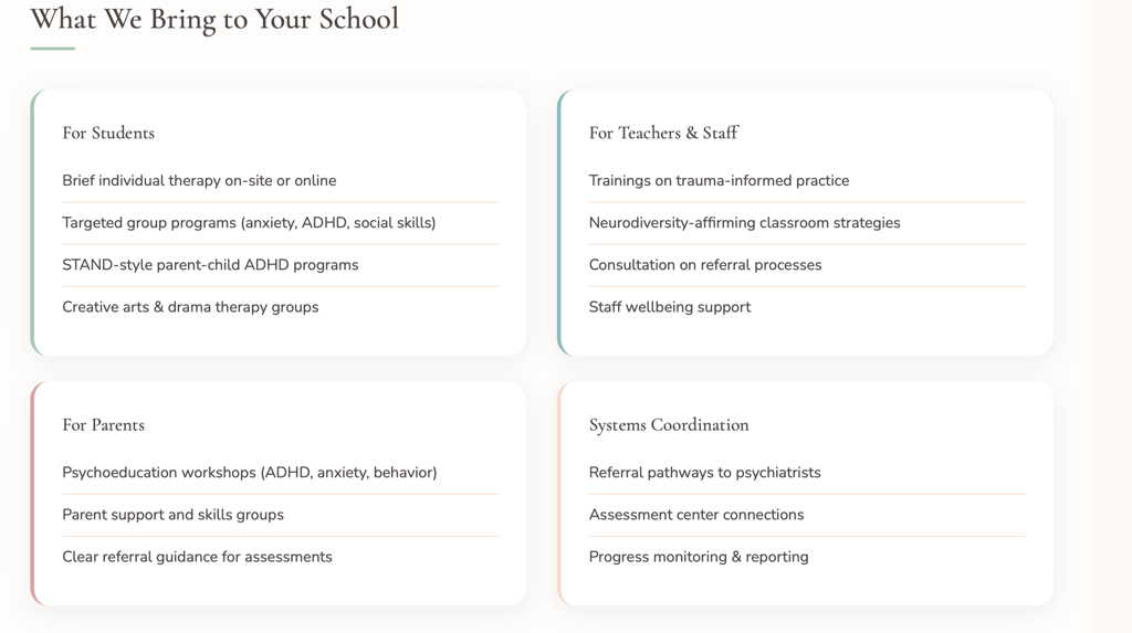 Children and teens don't bring only themselves to school, they bring their nervous systems, families, histories, and cultures. When something goes wrong, sending a single child to "fix" in therapy is rarely enough.