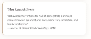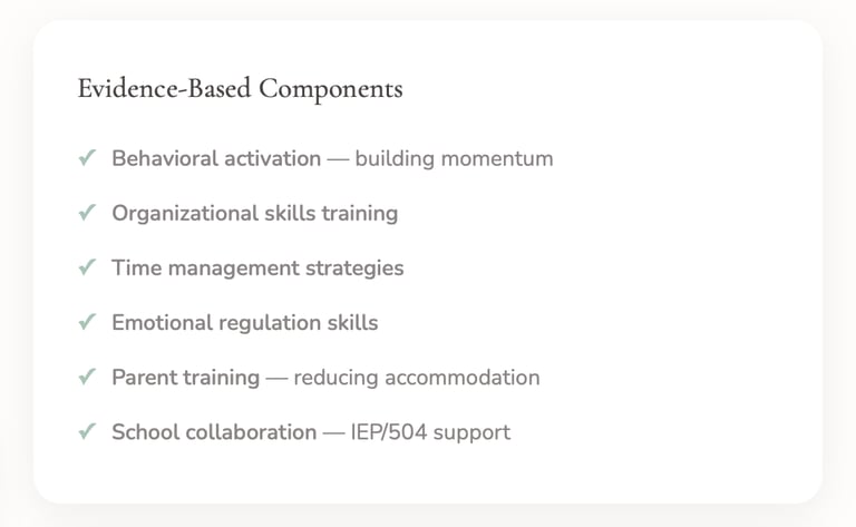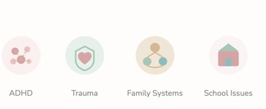 Focus on behavior, anxiety, school challenges, and family involvement.